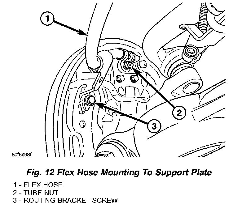 11. Thread flex hose tube nut into wheel cylinder port. Tighten tube nut to 17 Nm (145 in. lbs.) torque.