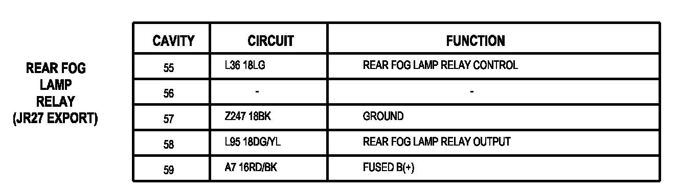 Rear Fog Lamp Relay (JR27 Export):