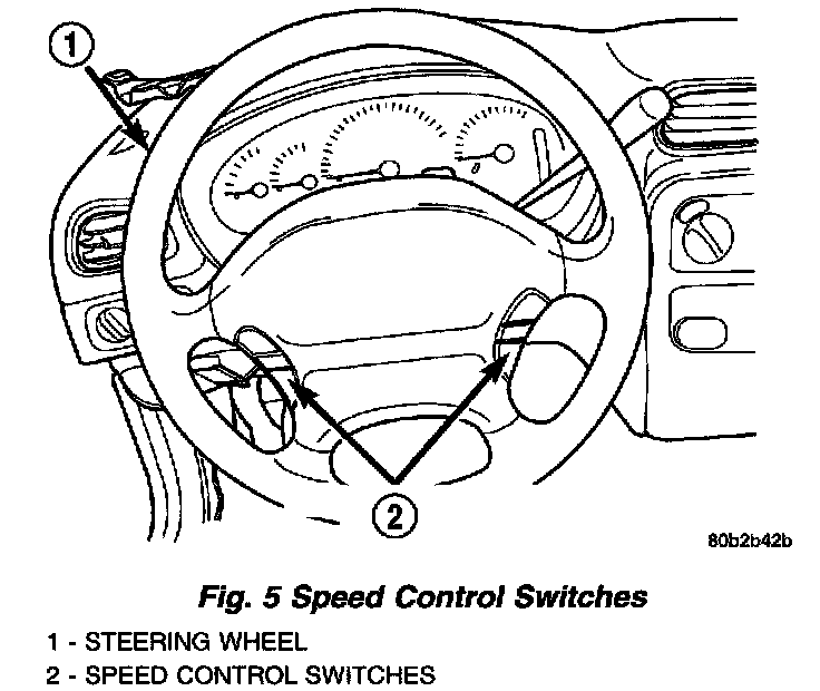 11. Remove speed control switches from steering wheel. Speed control switches are mounted to steering wheel by screws (one screw, each switch) which are accessible from back side of steering wheel. Disconnect wire connector from each switch.
