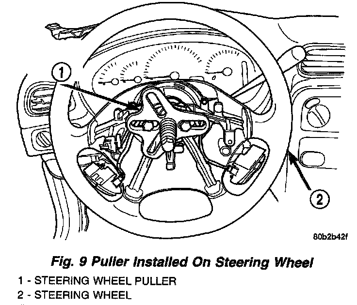 18. Remove puller from steering wheel, then remove steering wheel retaining bolt and steering wheel.