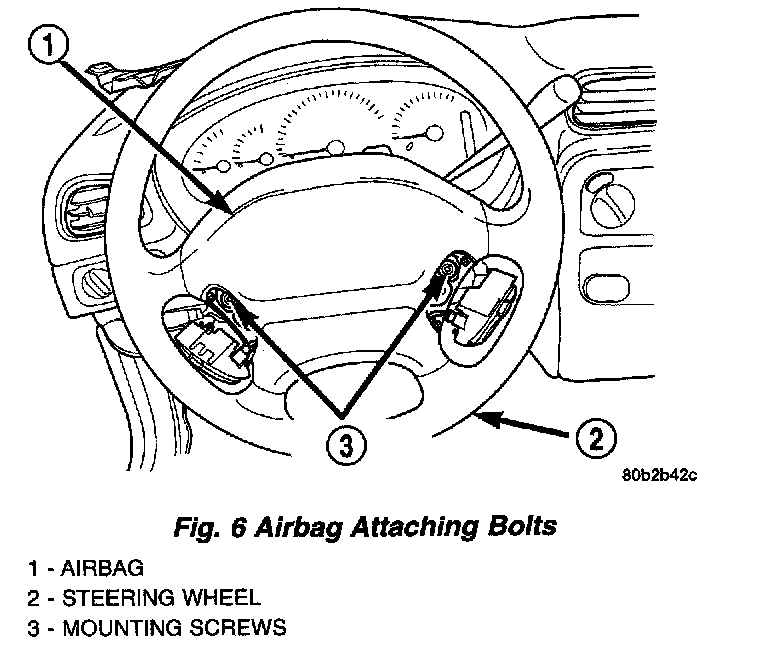 WARNING: WHEN HANDLING AN UNDEPLOYED AIRBAG DURING SERVICING OF THE STEERING COLUMN THE FOLLOWING PRECAUTIONS SHOULD BE OBSERVED. AT NO TIME SHOULD ANY SOURCE OF ELECTRICITY BE PERMITTED NEAR THE INFLATOR ON THE BACK OF THE AIRBAG MODULE. WHEN CARRYING A LIVE MODULE, THE TRIM COVER SHOULD BE POINTED AWAY FROM THE BODY TO MINIMIZE INJURY IF MODULE ACCIDENTALLY DEPLOYS. IF AIRBAG MODULE IS PLACED ON A BENCH OR OTHER SURFACE, PLASTIC COVER SHOULD BE FACE UP TO MINIMIZE MOVEMENT IN CASE OF ACCIDENTAL DEPLOYMENT.