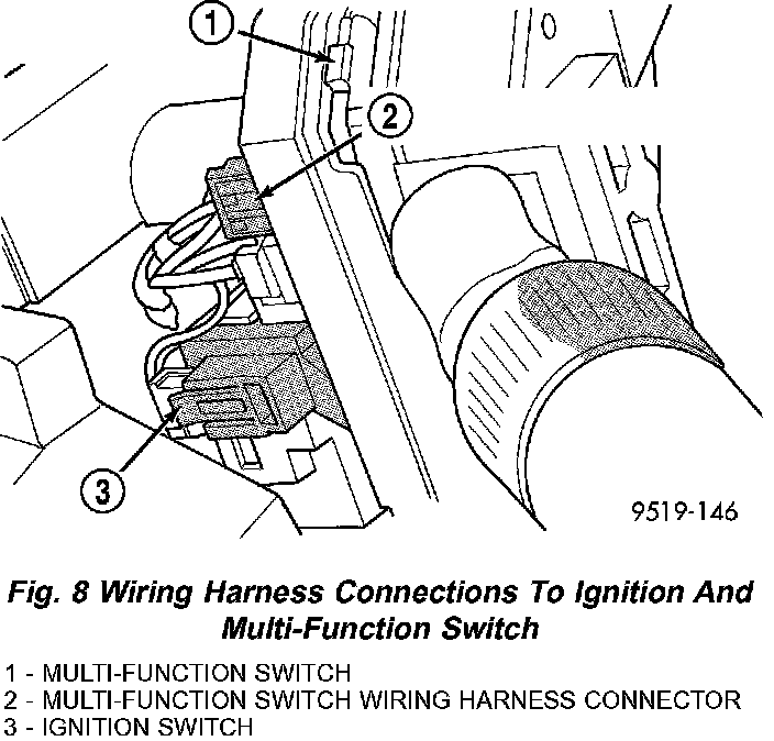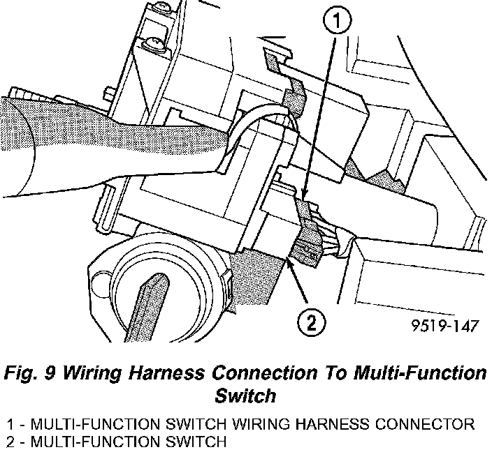 10. Install 2 wiring harness connectors to multifunction switch.