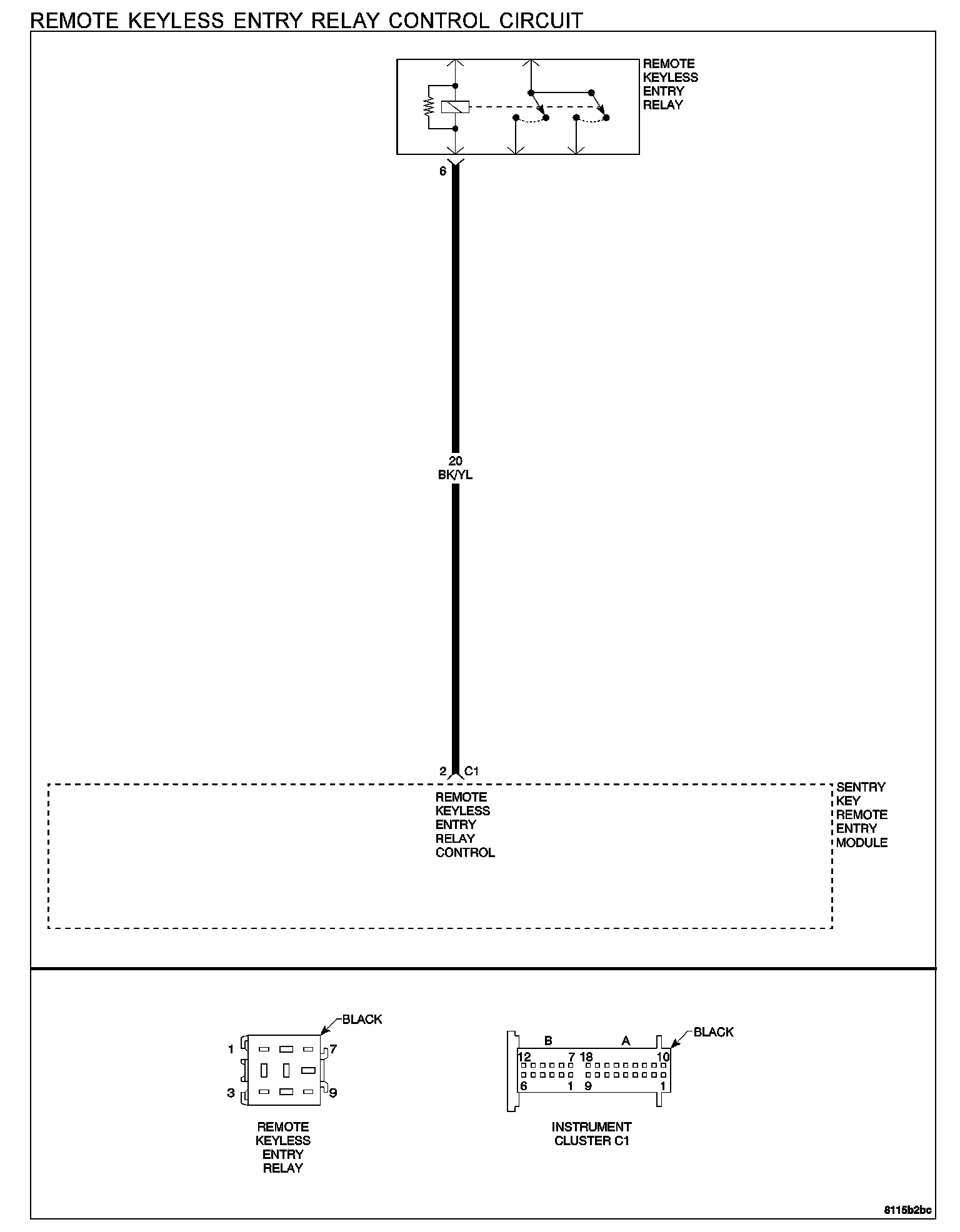 - Remote keyless entry relay control circuit shorted to ground