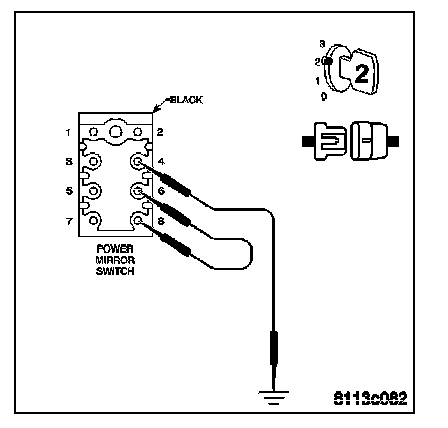 Connect a jumper wire between cavity 6 and cavity 8 of the Power Mirror Switch harness connector.