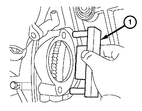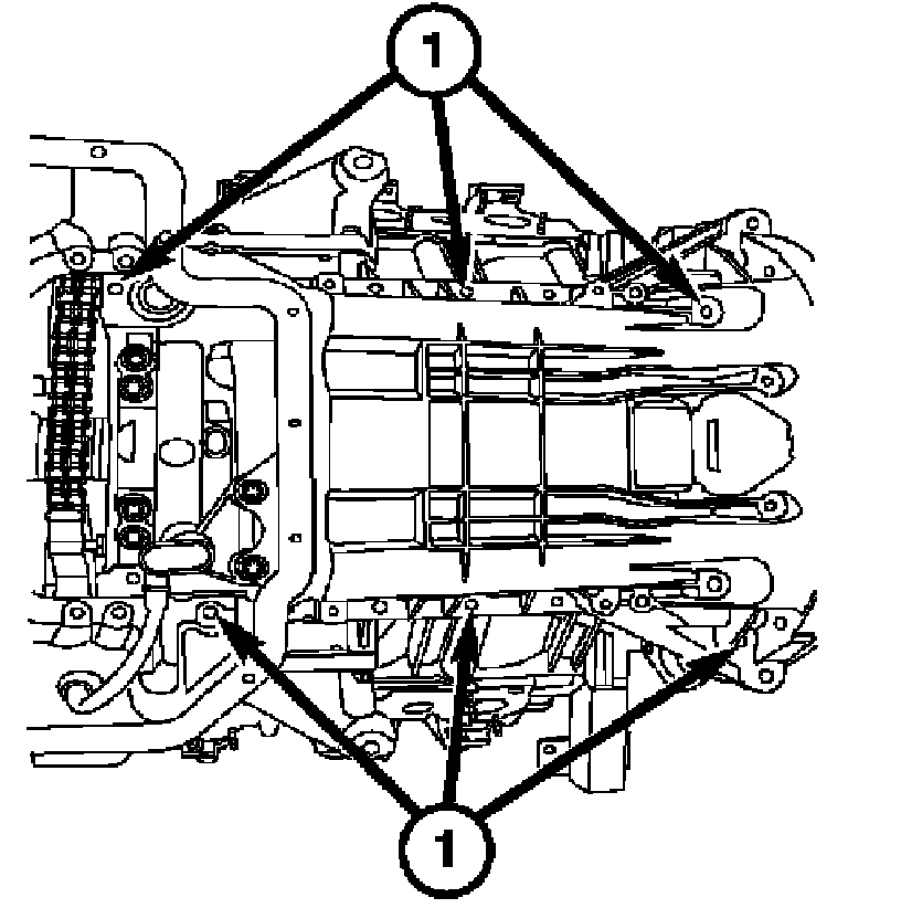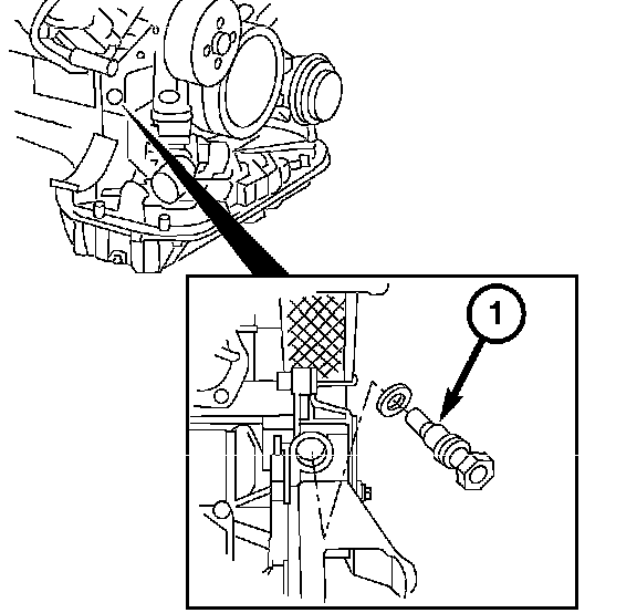 6. Install the timing chain tensioner (1), tighten to 80 Nm (59 ft. lbs.).