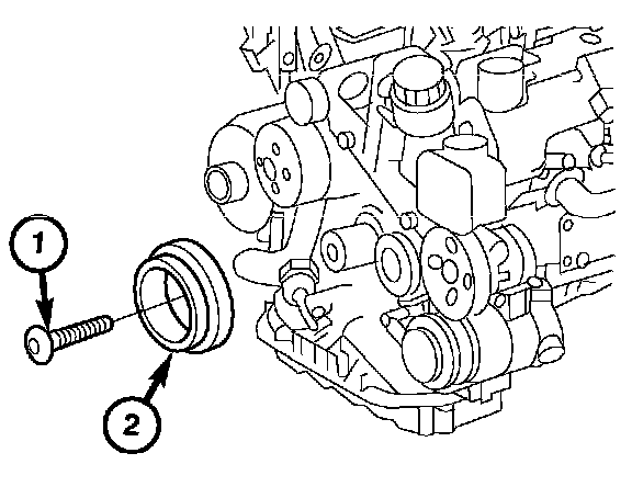 9. Remove the bolt (1) and remove the vibration damper (2).