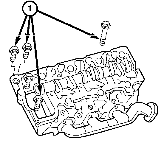 1. Install the cylinder heads, and install the bolts (1).