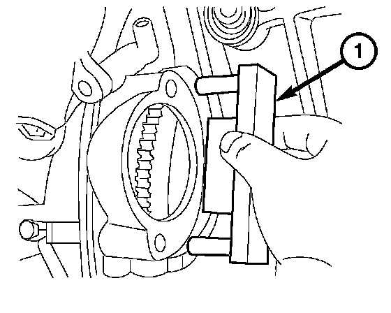 7. Remove Special Tool 9102 Flywheel Locking Tool (1) from the engine.