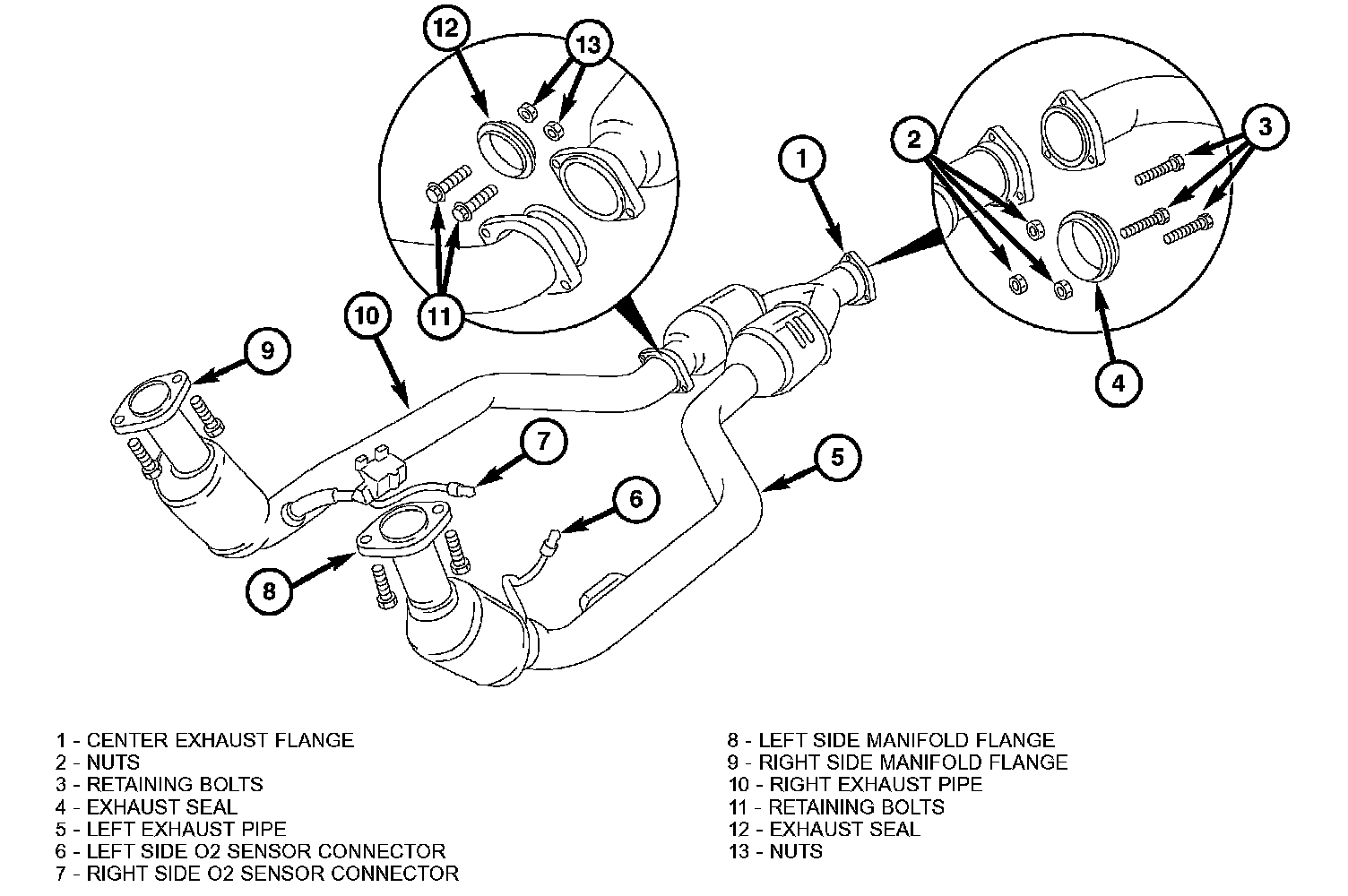 A thin-wall air-gap insulated exhaust pipe leads to the three-way catalytic converter, which has an air-gap insulated housing. The air-gap insulation, whereby a steel shell is wrapped around the component, limits heat loss to hasten the catalytic converter action. The insulation also minimizes the need for insulation to protect the passenger compartment from excessive temperatures. A large - 812 cu. in., (13.3 L) - muffler is tuned to produce a sporty tone that meets pass-by noise levels in all markets. The rear-mounted muffler terminates in dual bright exhaust tips.