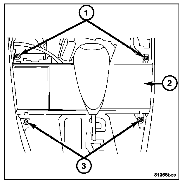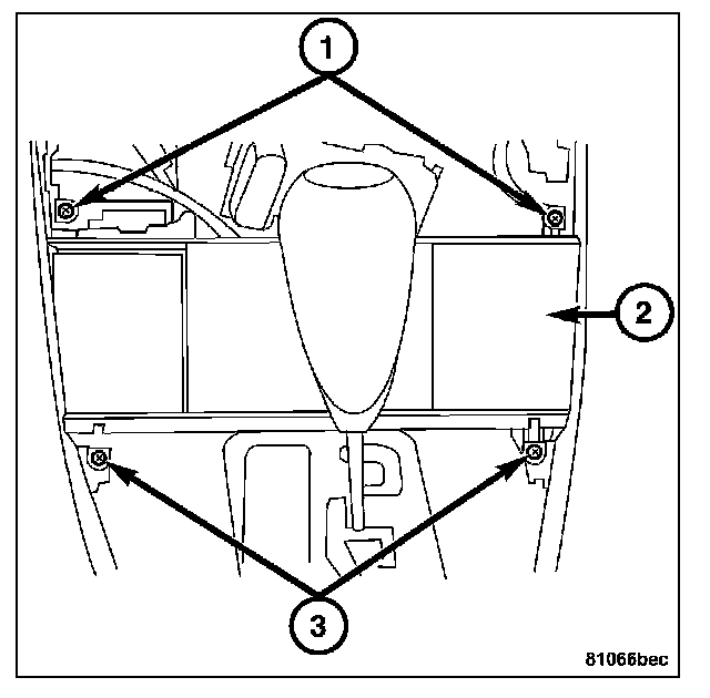 2. Remove the screws (1-3) attaching the ashtray (2) to the center console.