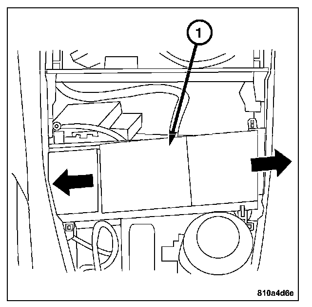 3. Press the ashtray housing (1) to the left and remove it toward the right (arrows).