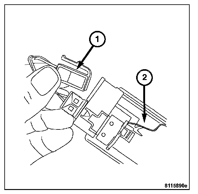 3. Disconnect the glove box lamp/switch harness connector and remove the glove box lamp/switch (2) from the vehicle.