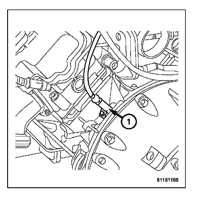 4. Remove the retaining bolt and the crankshaft position sensor (1).