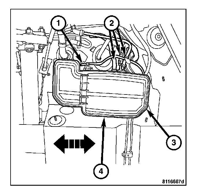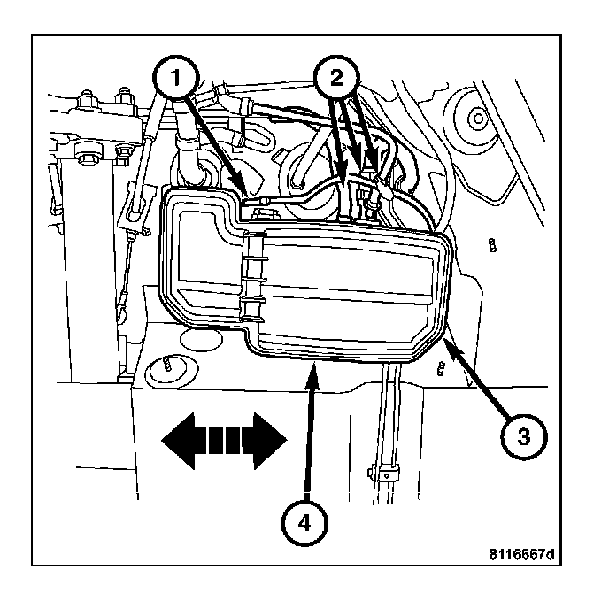 6. Slide the EVAP canister (4) to the left, off of mounting bracket.