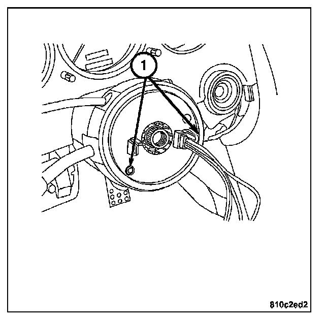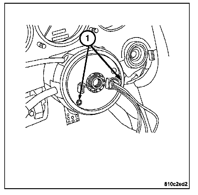 4. Remove the two screws (1) that secure the clockspring case to the multi-function switch mounting housing.