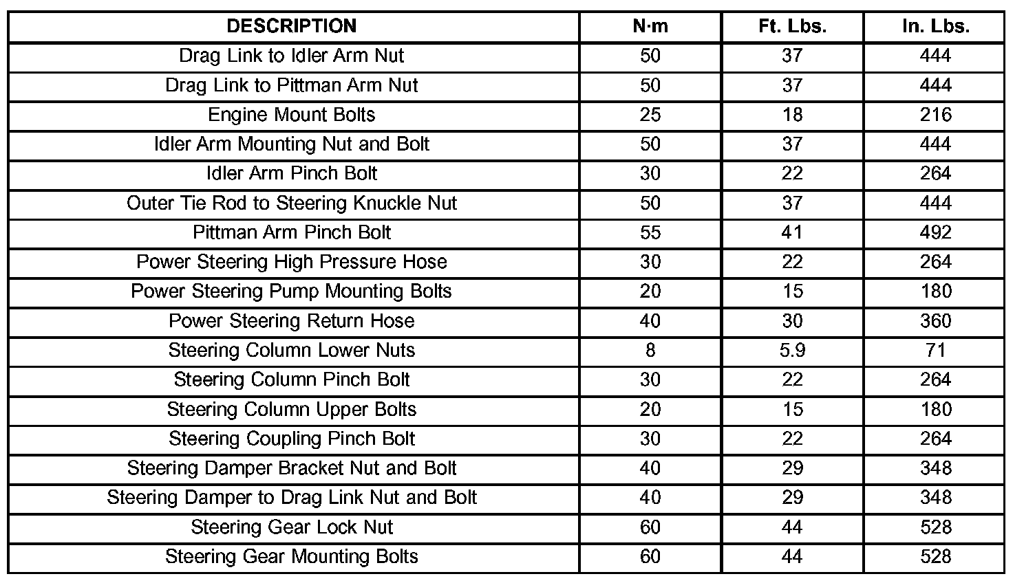 Torque Specifications: