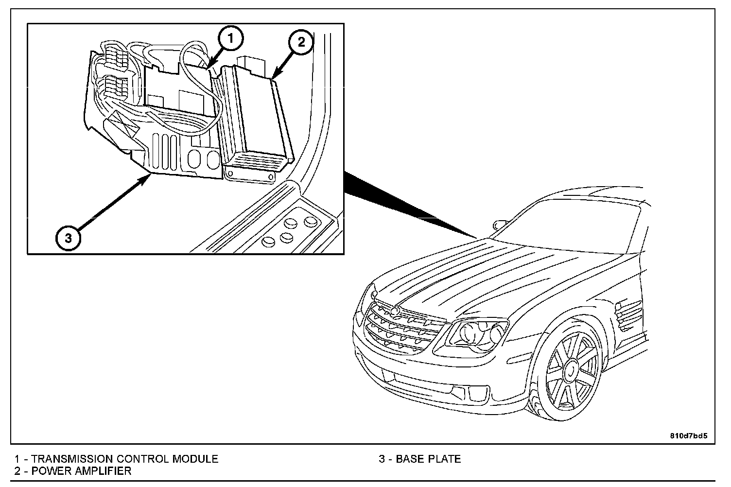 2. Install the screws holding the transmission control module (1) to the base plate (3).