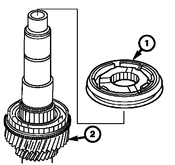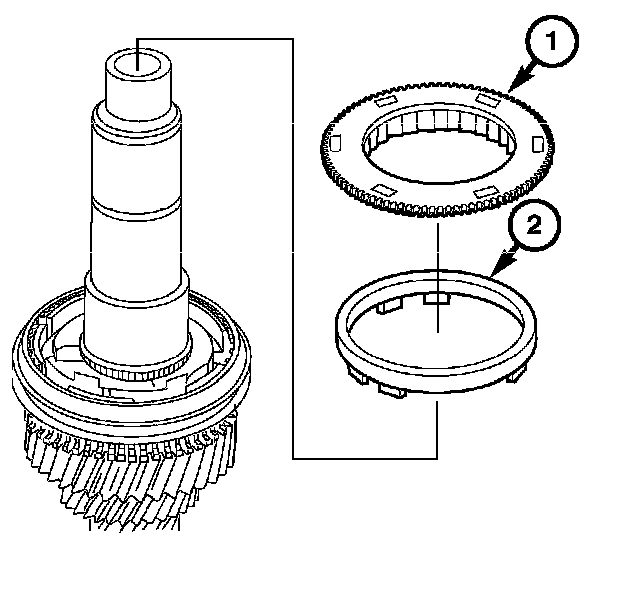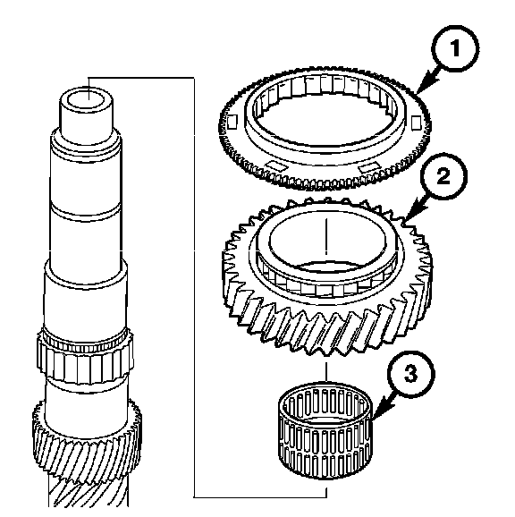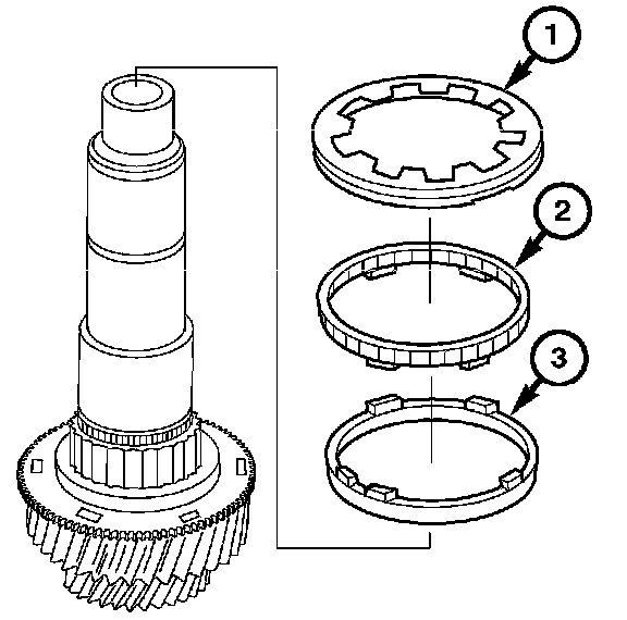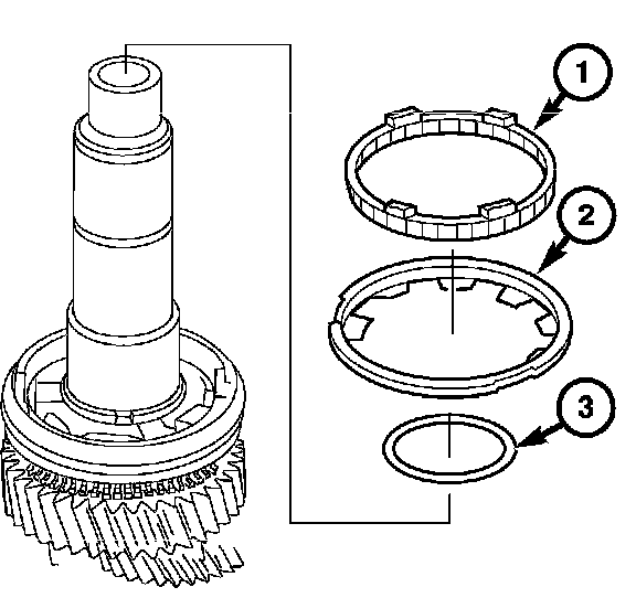 3. Install 4th gear friction ring (3), cone ring (2), and synchronizer ring (1).
