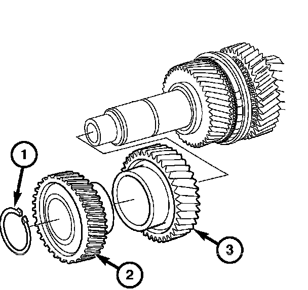 2. Install the 4th gear needle bearing (3), gear (2), and clutch body (1).