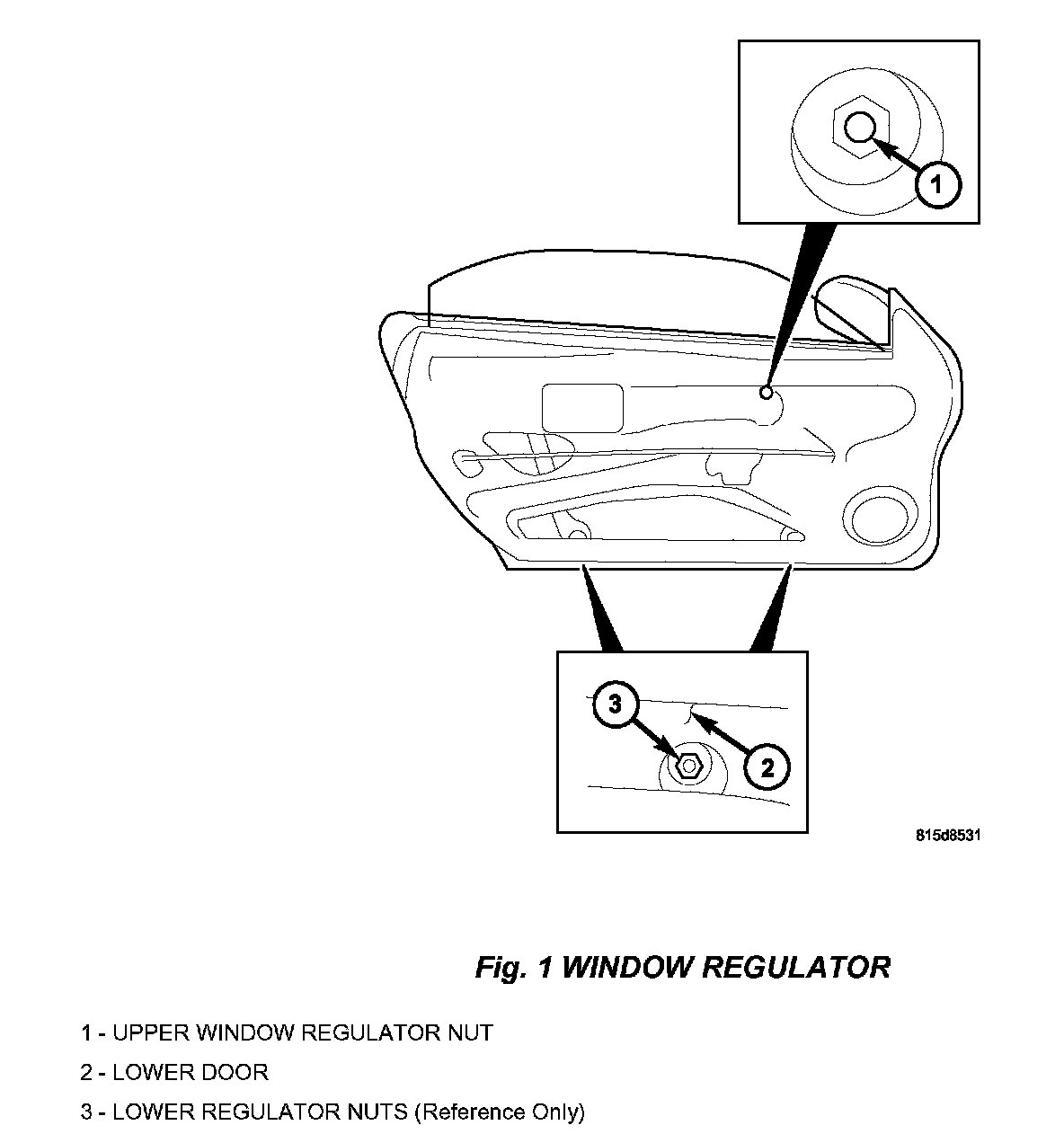 2. Replace the upper window regulator nut with p/n 05097674AA nut (Fig. 1).