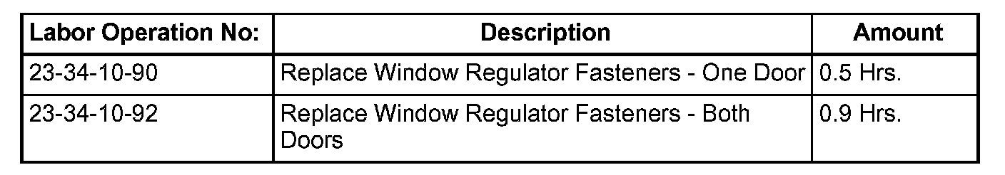This bulletin involves replacing the upper nut securing the window regulator to the door.
