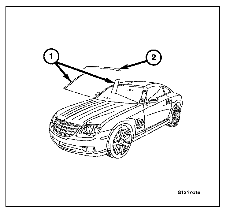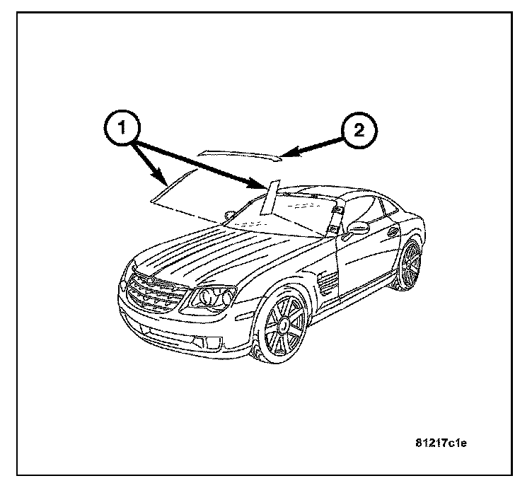 6. Clean inside of windshield (1) with Mopar Glass Cleaner and lint-free cloth.