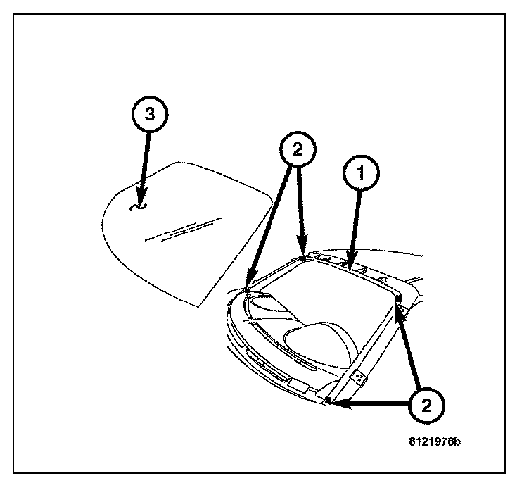10. Apply fence primer around the perimeter of the windshield opening fence (1). Allow at least 18 minutes drying time.