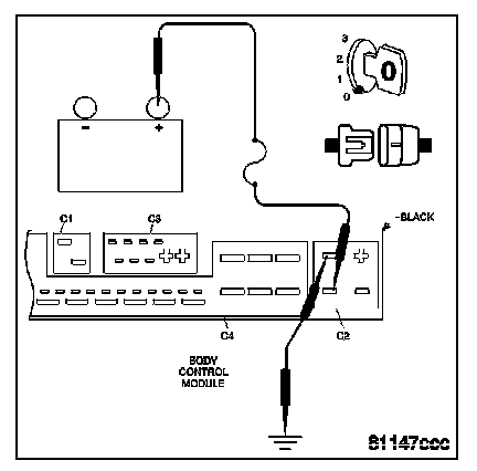 NOTE: Check connectors - Clean/repair as necessary. Connect a jumper wire between cavity 2 of the BCM C2 harness connector and B(+).