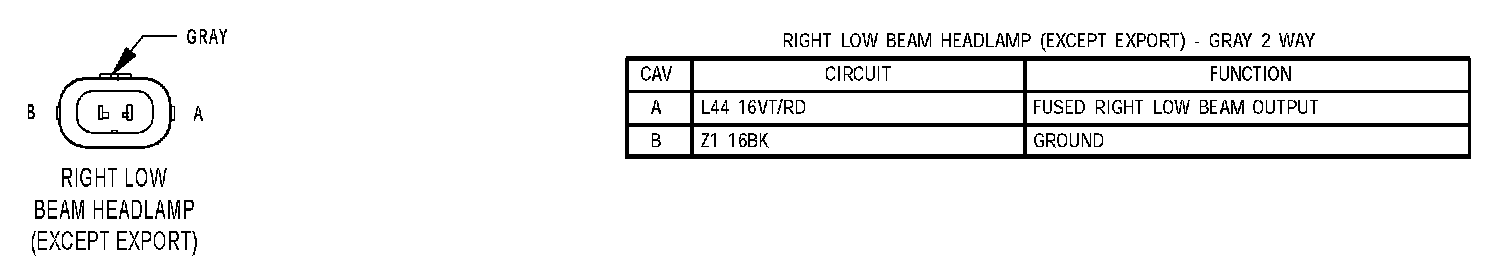 Right Low Beam Headlamp (Except Export):
