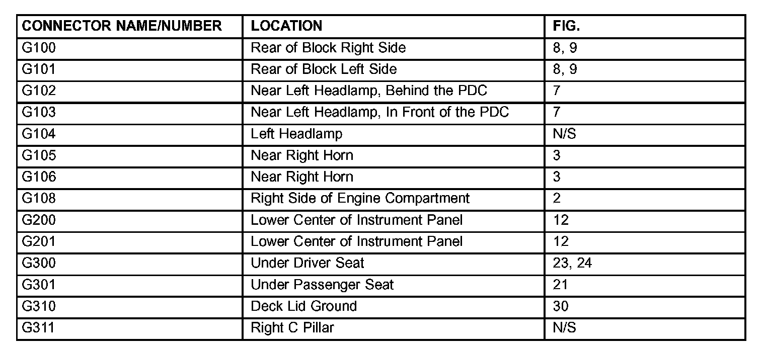 The abbreviation N/S means Not Shown in the illustrations.