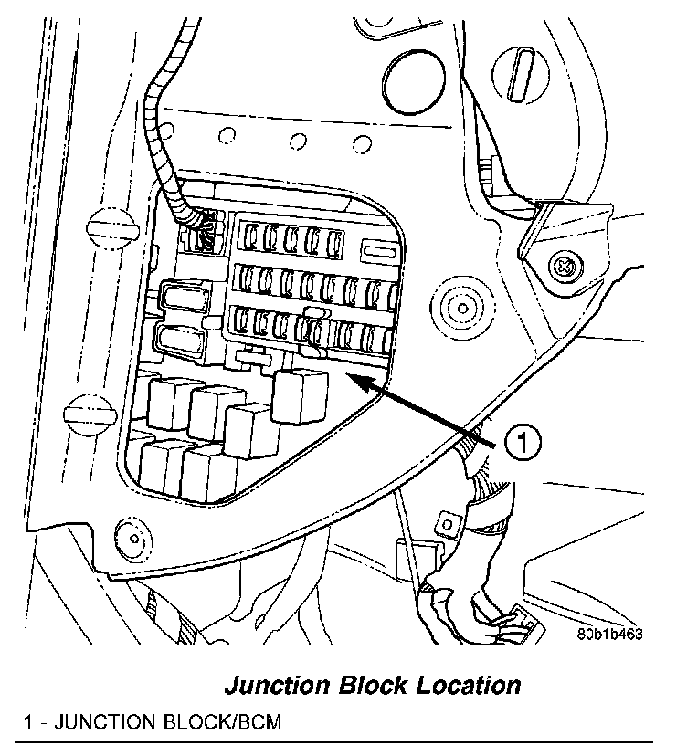 An electrical Junction Block (JB) is located in the left endcap of the instrument panel. The JB combines the functions previously provided by a separate fuseblock module and relay center. It also serves to simplify and centralize numerous electrical components, as well as to distribute electrical current to many of the accessory systems in the vehicle. It eliminates the need for numerous splice connections and serves in place of a bulkhead connector between many of the engine compartment, instrument panel, and body wire harnesses.
