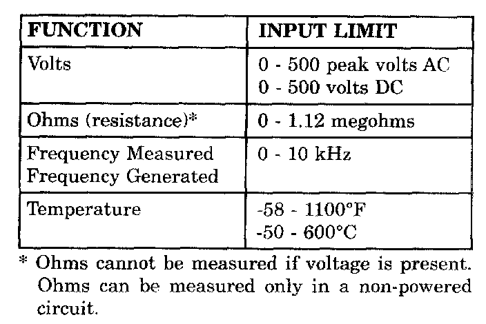 WARNING: EXCEEDING THE LIMITS OF THE DRBIII(R) MULTIMETER IS DANGEROUS. IT CAN EXPOSE YOU TO SERIOUS INJURY. CAREFULLY READ AND UNDERSTAND THE CAUTIONS AND THE SPECIFICATION LIMITS.Follow the vehicle manufacturer's service specifications at all times.