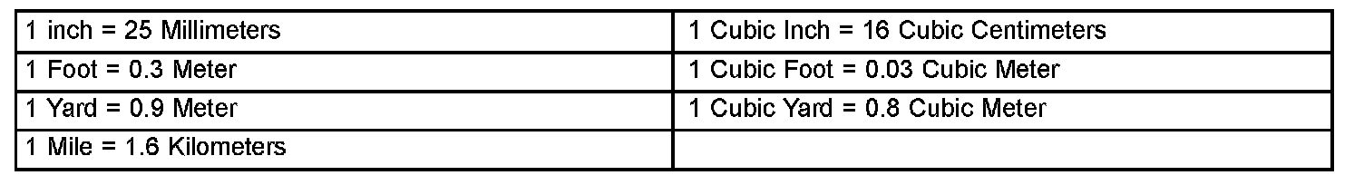 Common Metric Equivalents:
