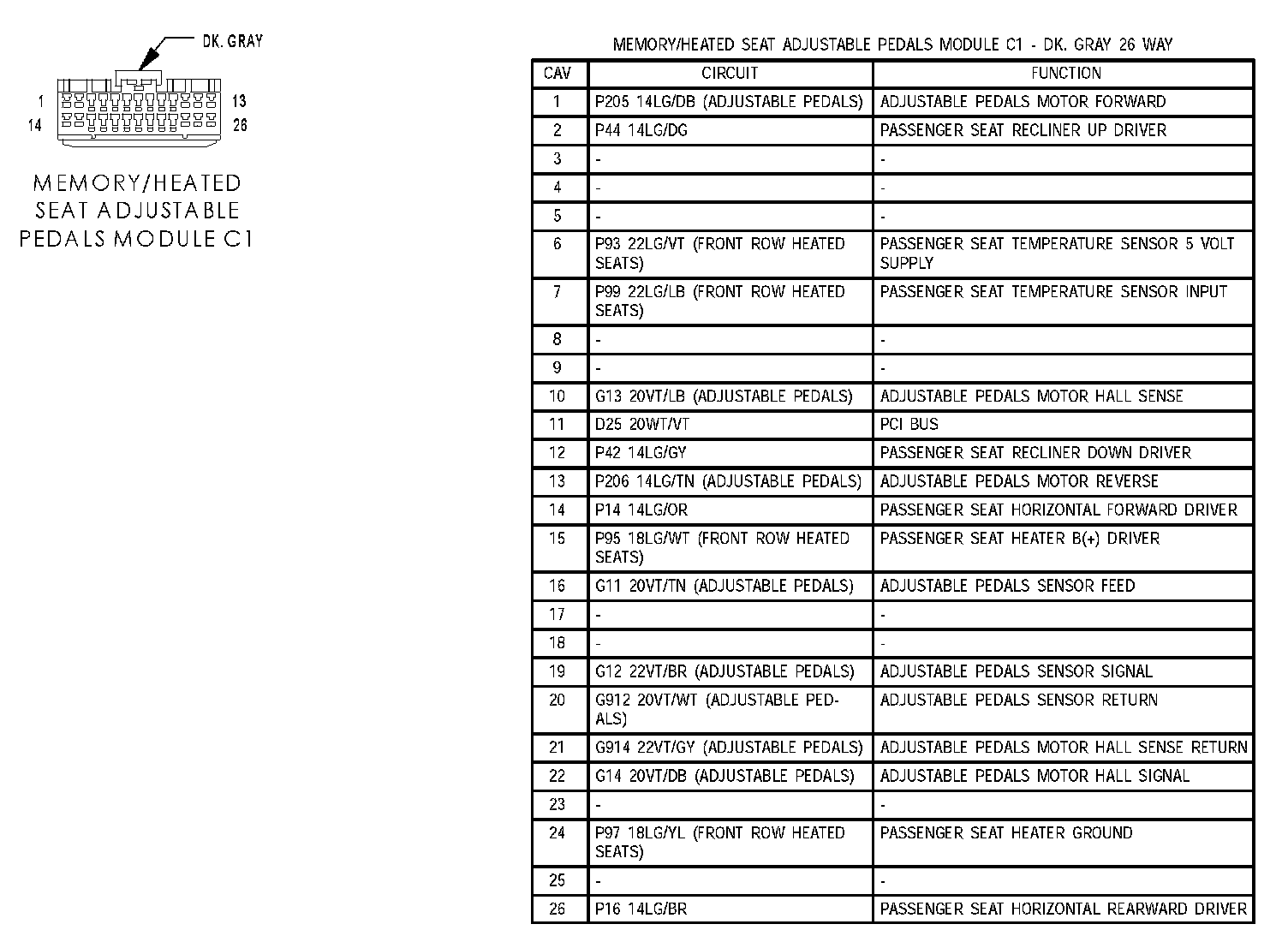 Memory/Heated Seat Adjustable Pedals Module C1: