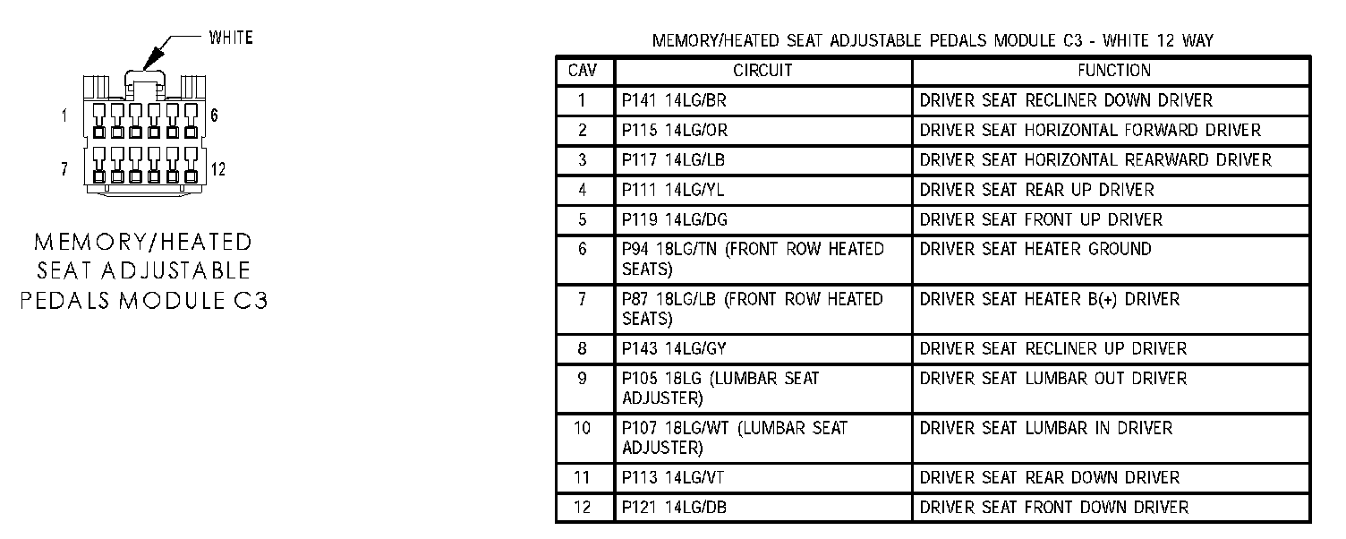 Memory/Heated Seat Adjustable Pedals Module C3: