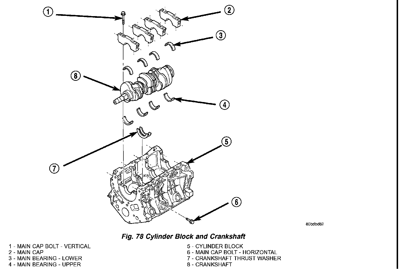 2. Install the crankshaft to cylinder block. (Fig. 78)