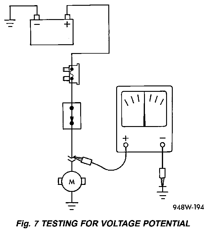 1. Connect the ground lead of a voltmeter to a known good ground (Fig. 7).