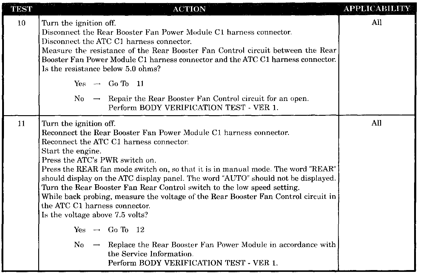 REAR BOOSTER FAN INOPERATIVE