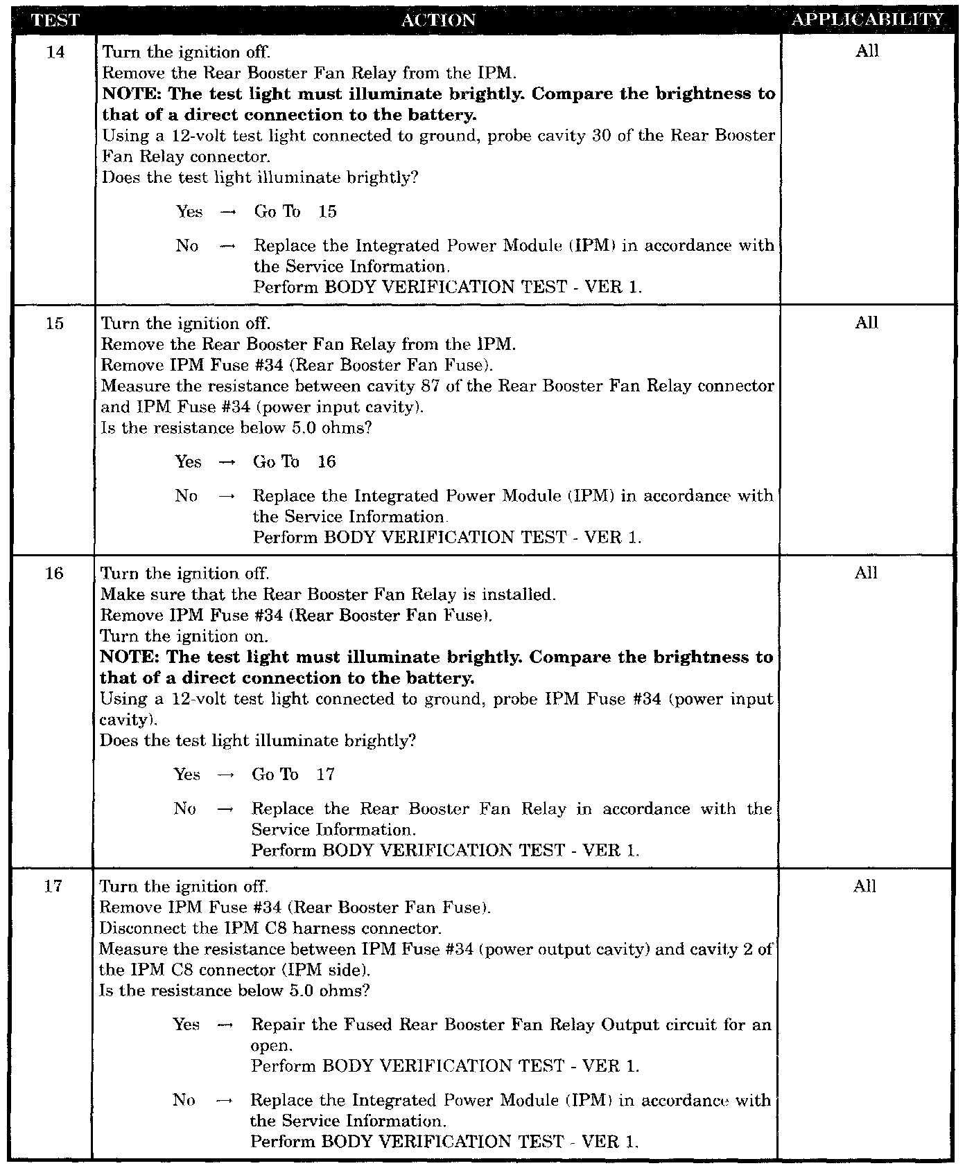 - Fused rear booster fan relay output circuit open
