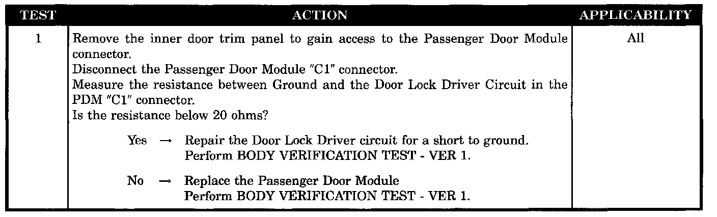 ALL DOORS (EXCEPT DRIVER) FAIL TO LOCK