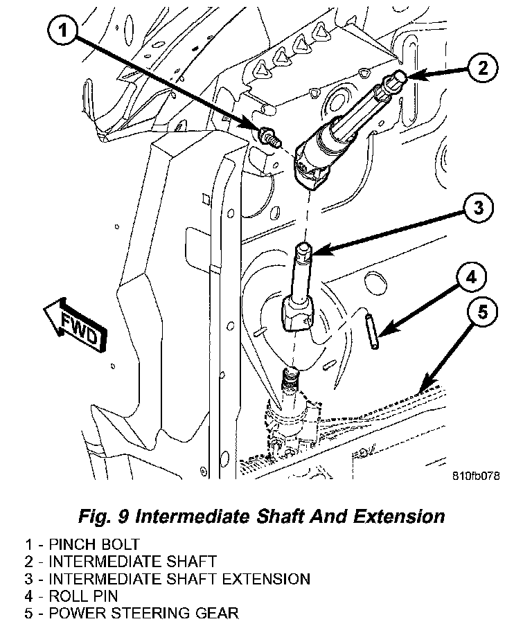 11. Remove pinch bolt fastening intermediate shaft to intermediate shaft extension (Fig. 9).