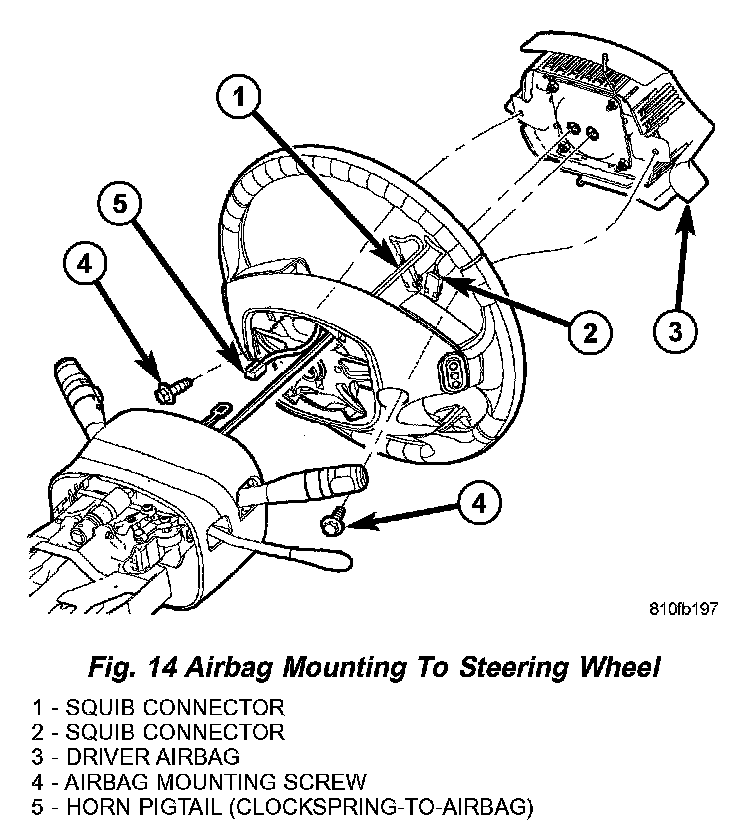 7. Connect two airbag squib connectors and horn connector to driver airbag (Fig. 14).
