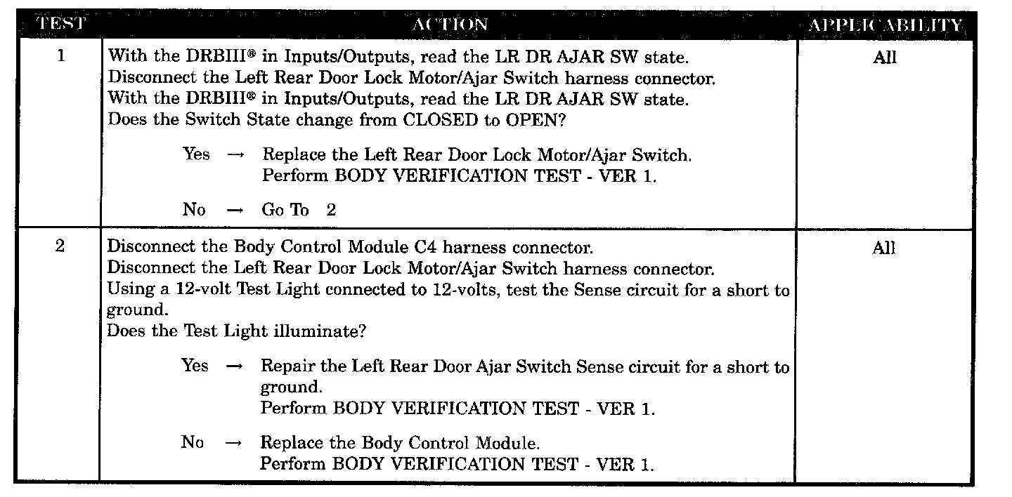 LEFT REAR DOOR AJAR CIRCUIT SHORTED TO GROUND