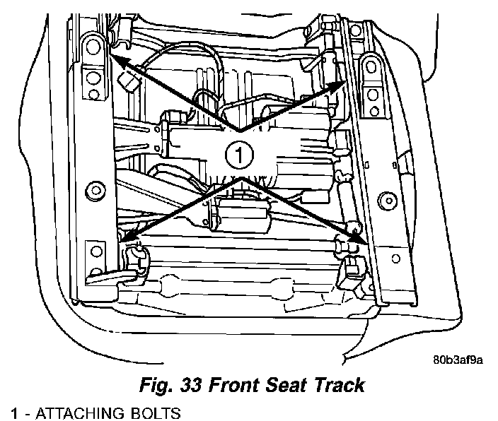 4. Remove bolts attaching seat adjuster to cushion pan (Fig. 33).