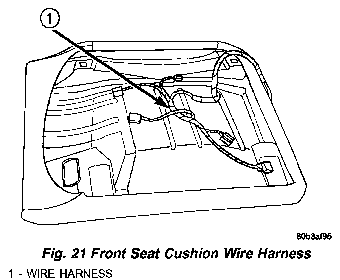 5. Disconnect wire harness fasteners from cushion frame (Fig. 21).