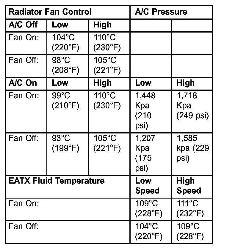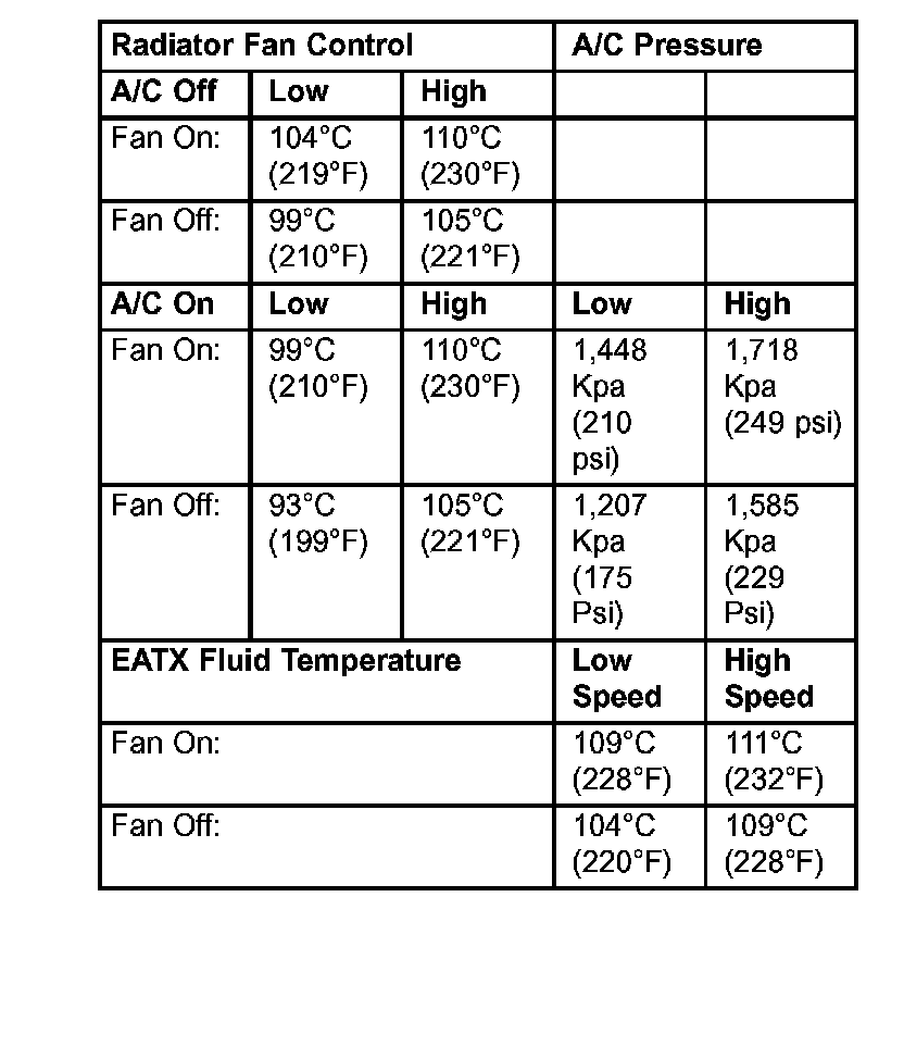 ^ The fan will not run during cranking until the engine starts no matter what the coolant temperature is.