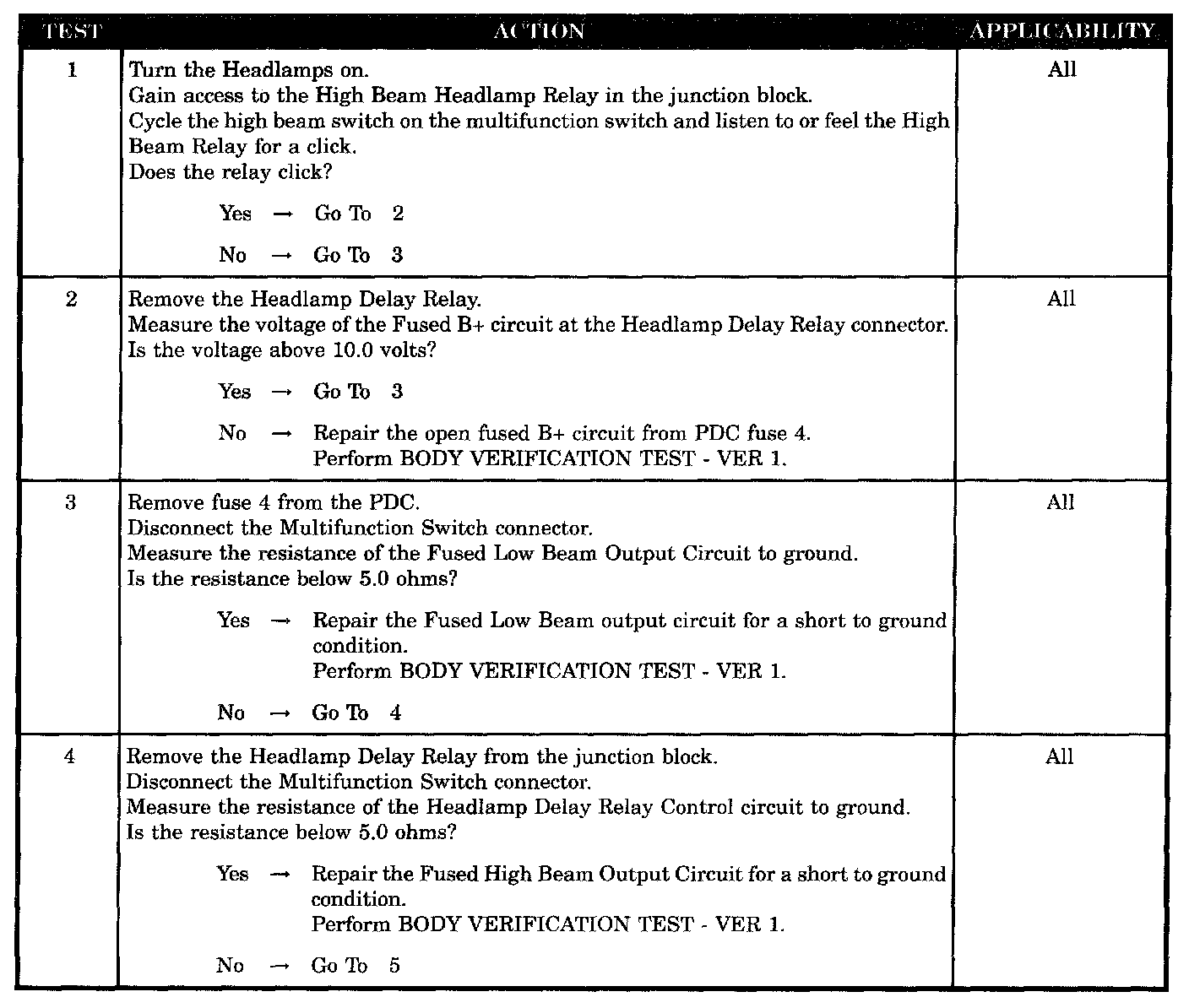 HIGH BEAM HEADLAMPS WILL NOT TURN ON