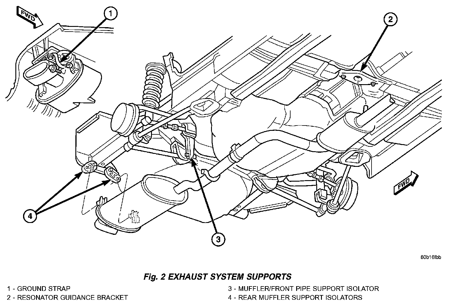 The exhaust system on the 2.0L/2.4L engine models consists of a front mounted catalytic converter, resonator/pipe assembly, muffler/pipe assembly, band clamps, and support isolators. The upstream oxygen sensor is located in the exhaust manifold. The downstream oxygen sensor is located in the catalytic converter.