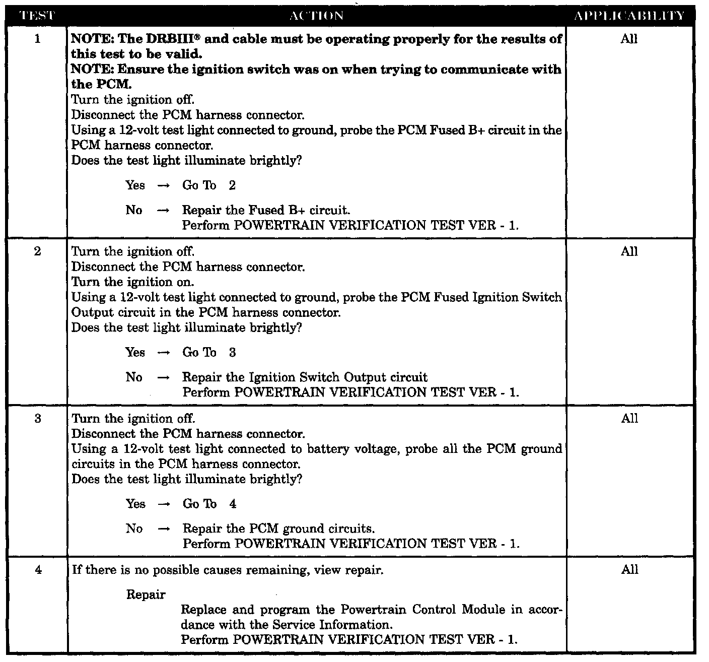 No Response From PCM With A No Start Condition