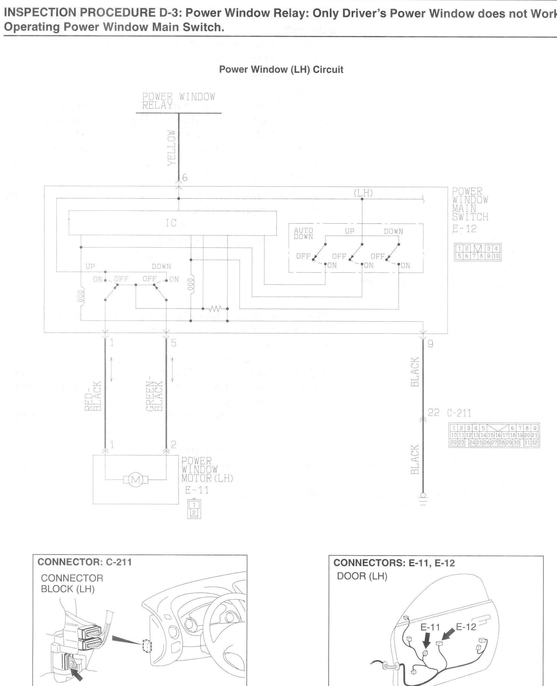 INSPECTION PROCEDURE D-3: Power Window Relay: Only driver's power window does not work by operating power window main switch.